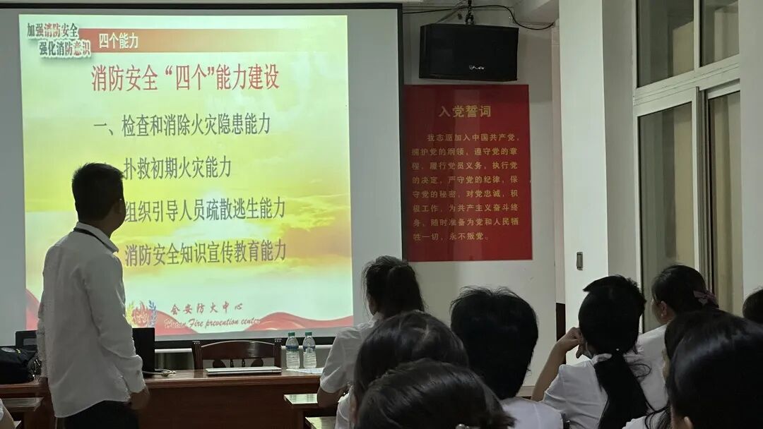 培训员从消防安全的四个能力、火灾的预防措施、火灾发生后的应急处理、发生火灾疏散逃生的注意事项和灭火器和消防栓的使用方法进行详细解说。